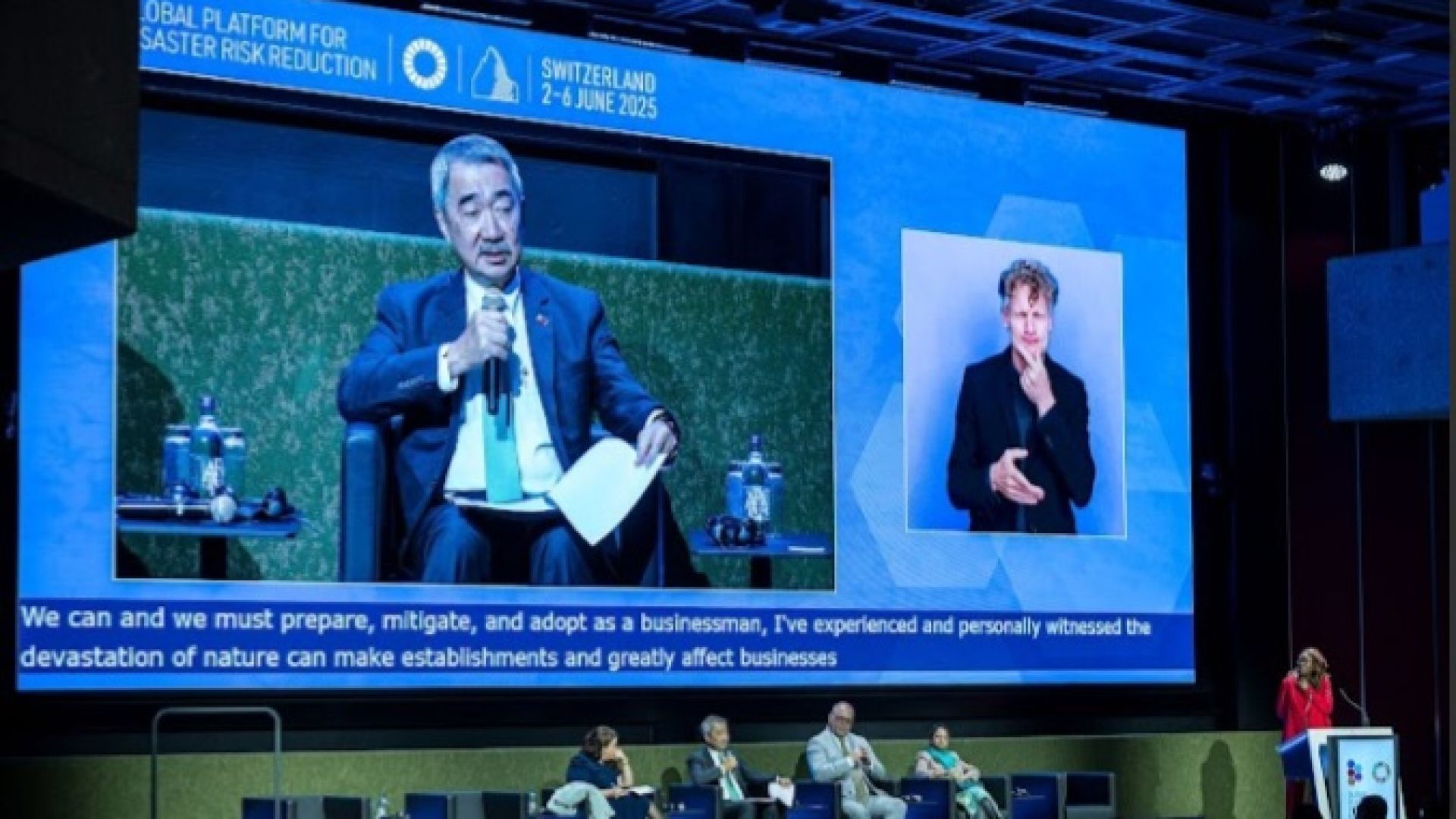 Hans Sy speaking in the 8th Session of the Global Platform for Disaster Risk Reduction (GP2025), organized by the UN Office for Disaster Risk Reduction and co-chaired by the Government of Switzerland.